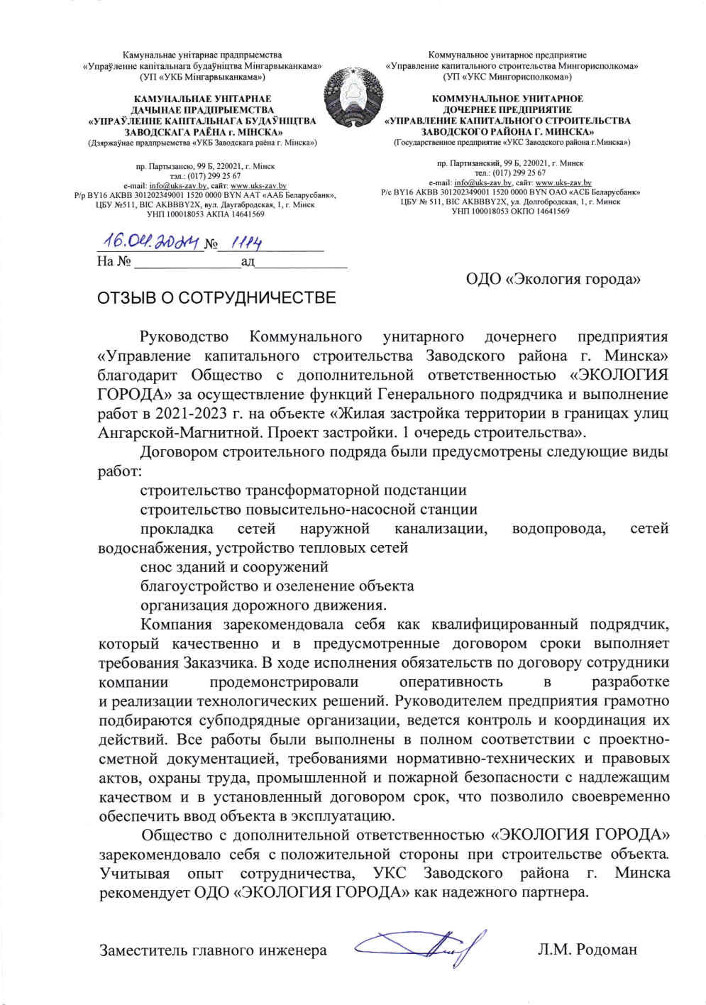 Запрос акта выполненных работ